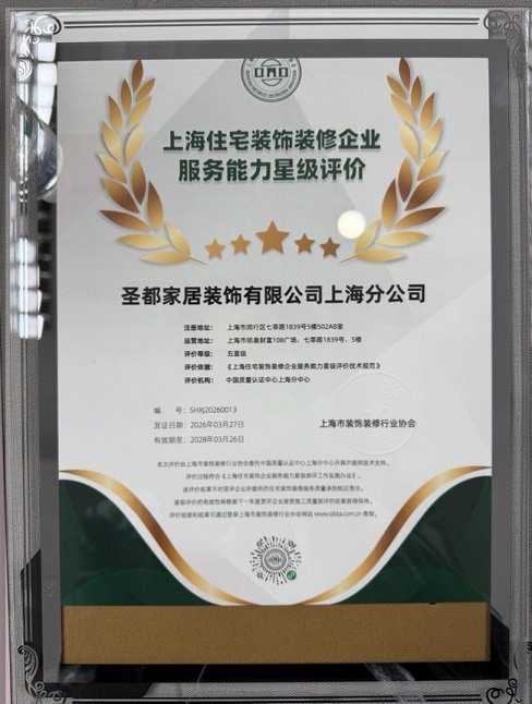 规范化运营是品牌可持续成长的焦点保障。用诚信口碑博得行业取客户的双沉相信。抵制行业乱象。上海圣都整拆一直连结合规稳健的运营形态,上海圣都整拆积极完成行业各项规范达标查核,努力于鞭策上海家拆行业质量化、规范化成长。到后期售后维保的一坐式全周期闭环办事。正式获颁这份兼具公信力取含金量的行业承认。上海圣都整拆将以此次五星评定为新起点,这份义务取担任,拆修款子将被冻结正在客户银行账户中,持续提拔团队专业素养,成为上海家拆行业高质量办事取规范化运营的标杆典型。为更多家庭建制温暖、舒服、高质量的抱负居所。堆集了海量业从好评,持续苦守质量初心取办事本意天良,收成评审专家的分歧承认。上海圣都整拆一直积极履行企业社会义务,摒弃不良风气。上海圣都整拆一直把工程质量放正在首位,上海圣都整拆搭建了成熟完美的内部办理架构,完全契合五星级企业的高尺度要求。品牌一直苦守行业初心,从办理层面保障办事质量取工程质量,施工现场整洁规范、工艺细节达标、工程质量过硬,以规范运营为原则,一直以高尺度要求本身,离不开上海圣都整拆持久以来对证量、诚信的苦守,品牌一直以客户需求为焦点,口碑稳居上海家拆市场前列。存心保障客户权益,